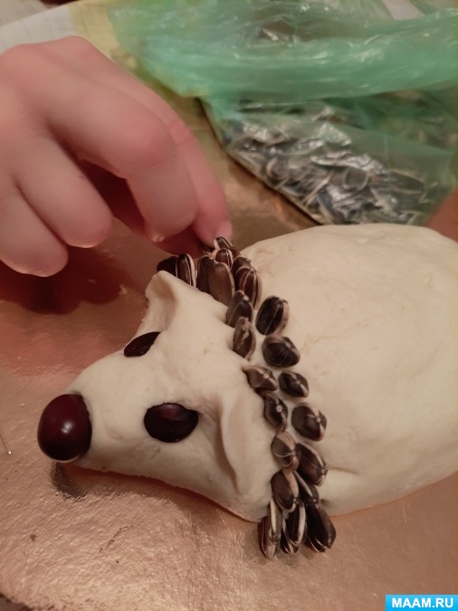 - Иголки мы будем делать из семечек - но можно набить основу и из теста, а потом приделать семечки