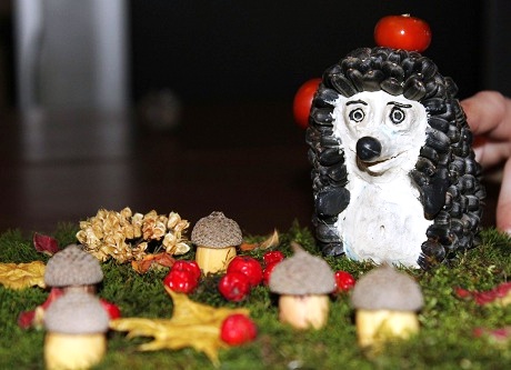 Чем больше СЕмечки - тем шикарнее у ежа будет шкурка. Для крепежа просто втыкаем в тесто: